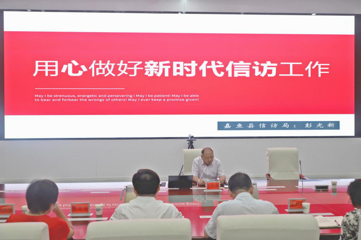 培训会上,嘉鱼县信访局副局长彭光新以《用心做好新时代信访工作》为主题,从个人信访工作经历;信访干部的苦乐观;信访干部的“别有用心”三个方面,倾囊相授,传经送宝,为我们作了精准诠释和详实解读。报告站位高远、内容丰富,观点鲜明、解析透彻,既有理论高度,又有实践深度,对我们如何做好新时代的信访工作具有很强的现实指导意义。