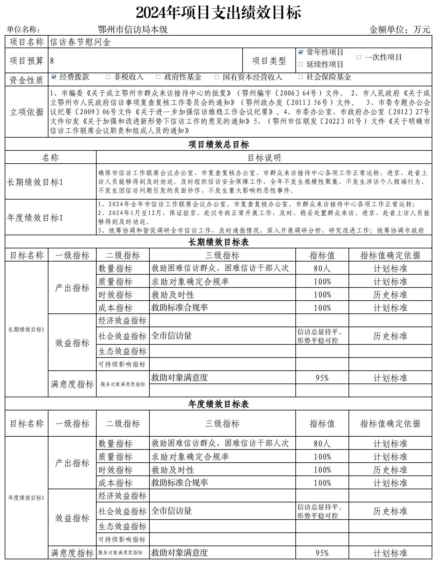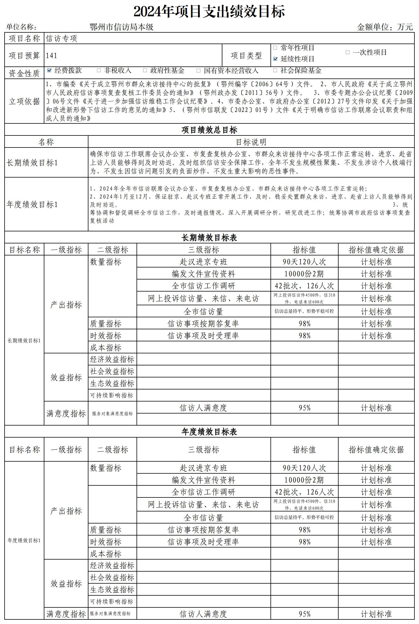 鄂州市信访局2024年项目支出绩效目标