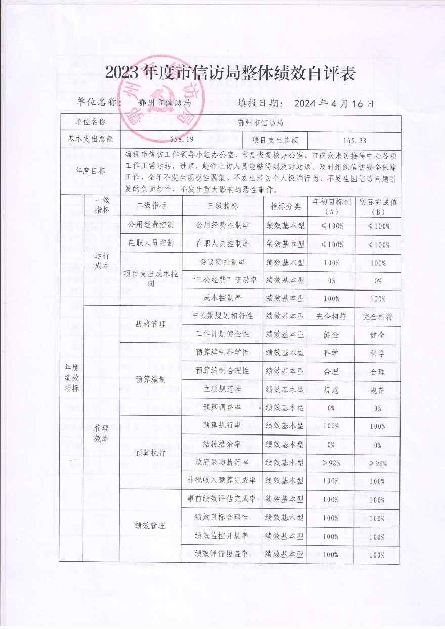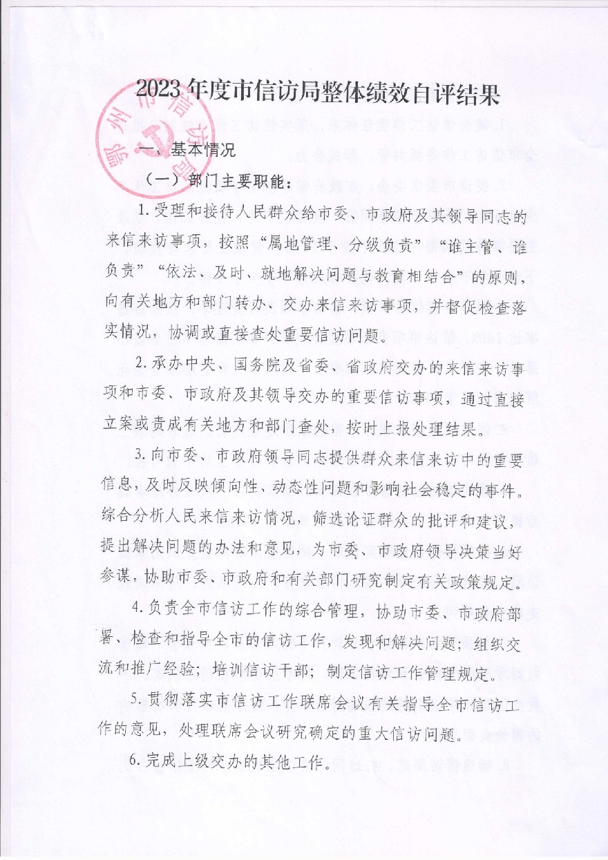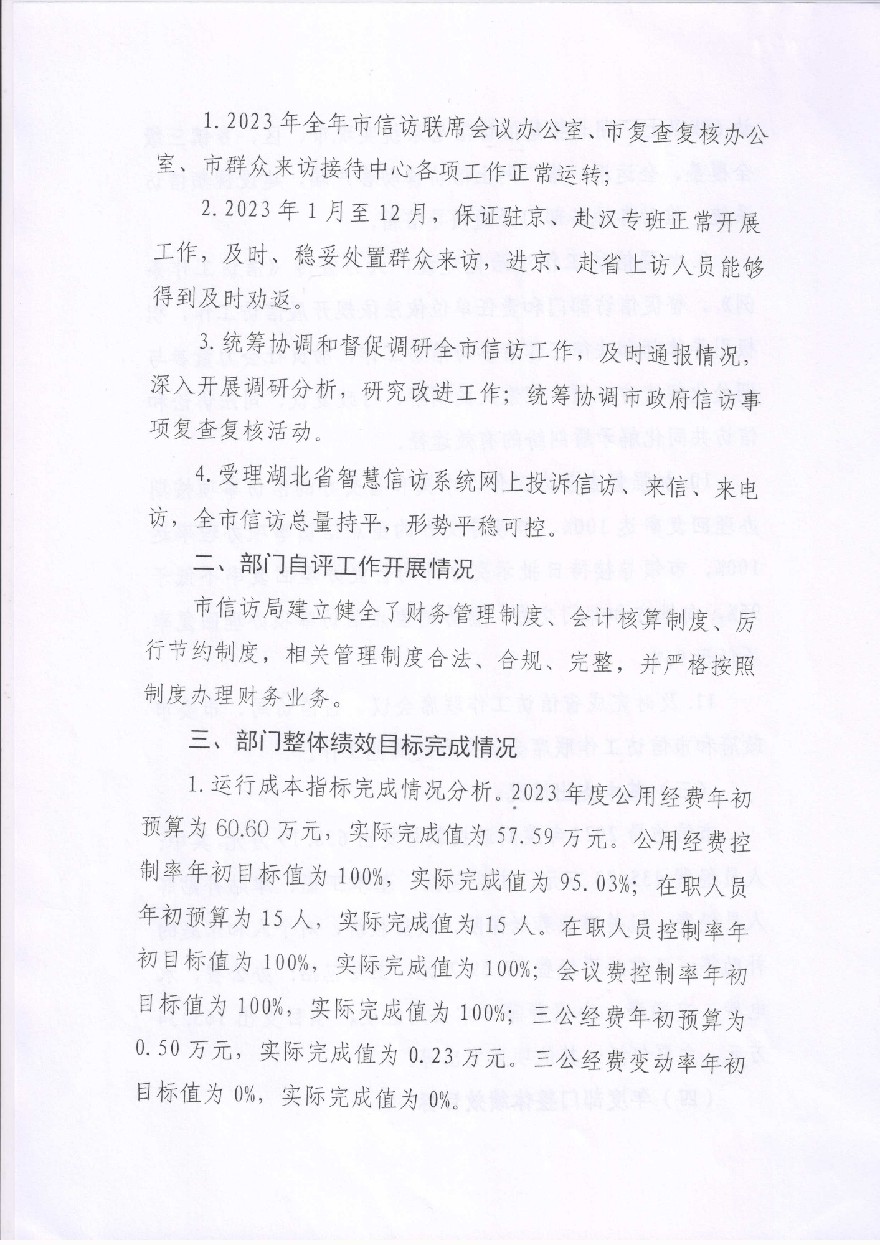 2023年度市信访局部门整体绩效自评