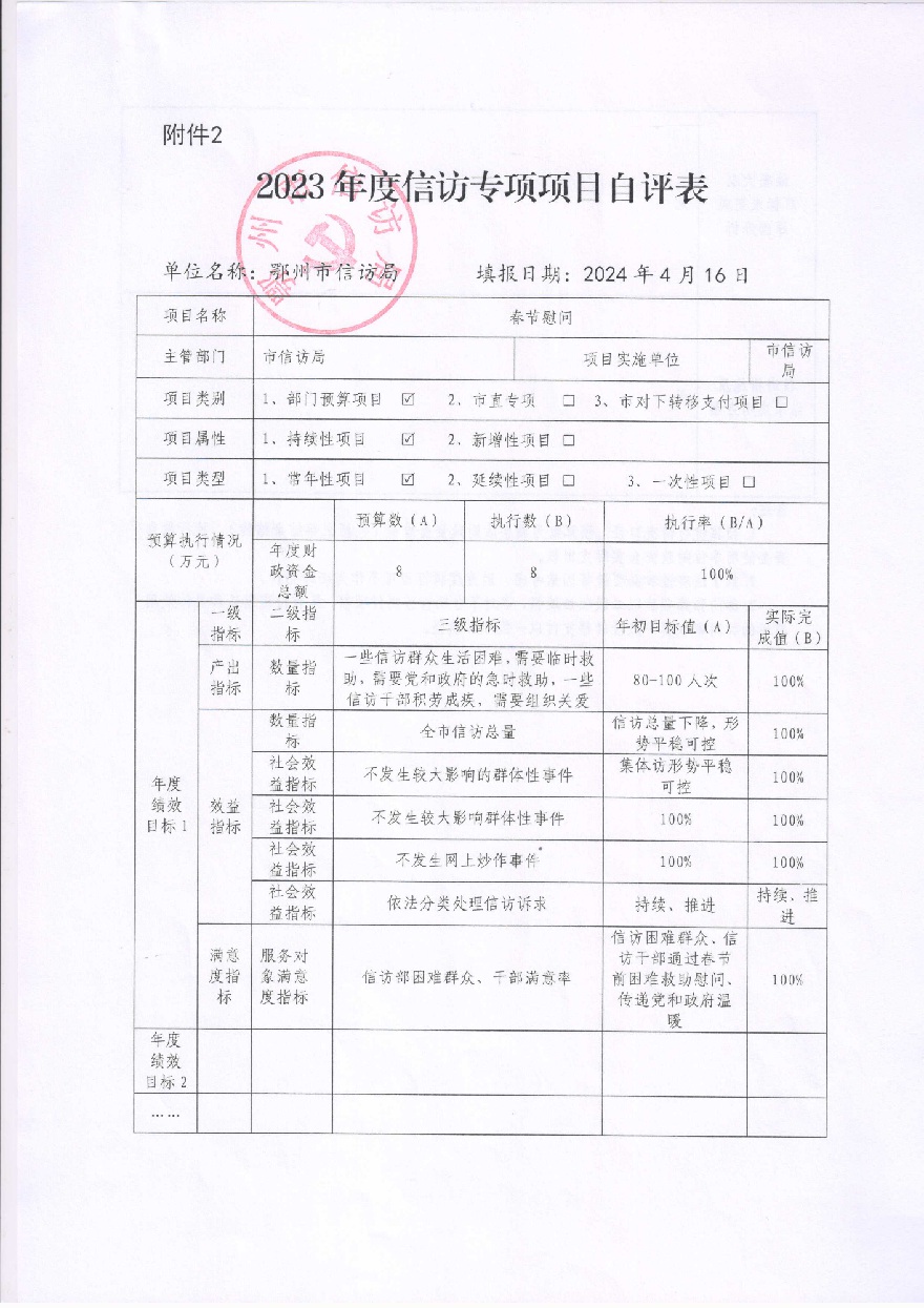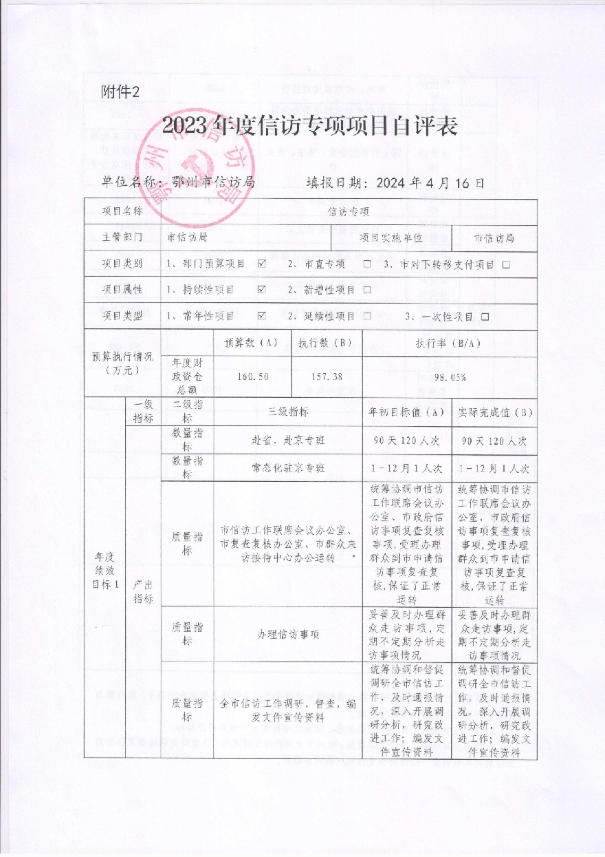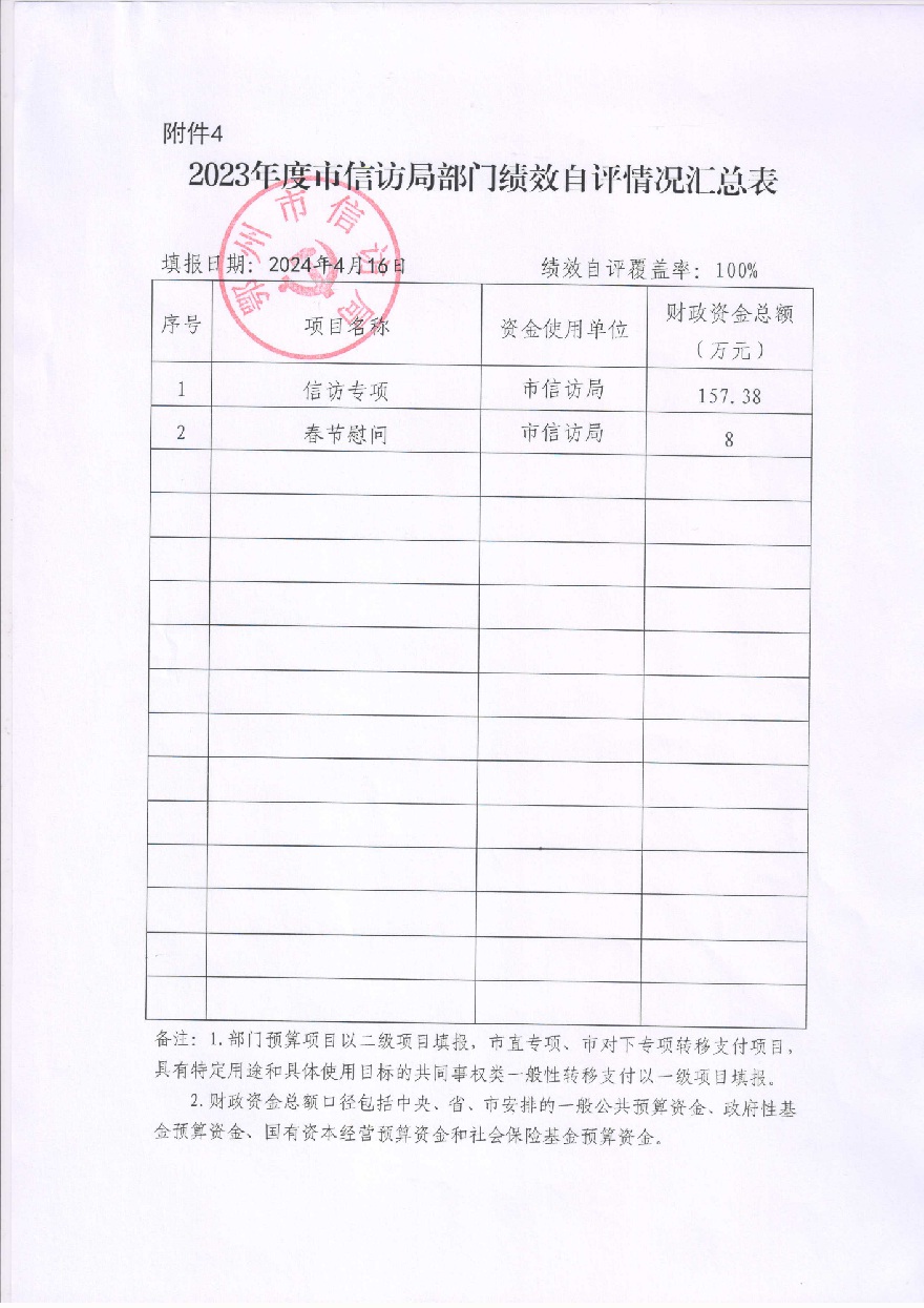 2023年度市信访局部门整体绩效自评